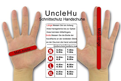 Die schnittresistenten Handschuhe von UncleHu werden einsam jedweder Materialien hergestellt, die problemlos mit Nahrungsmitteln in Kontakt kommen können. Sie sind waschmaschinenfest und stellen eine perfekte Zusatz Ihrer Küchensicherheitsutensilien dar!