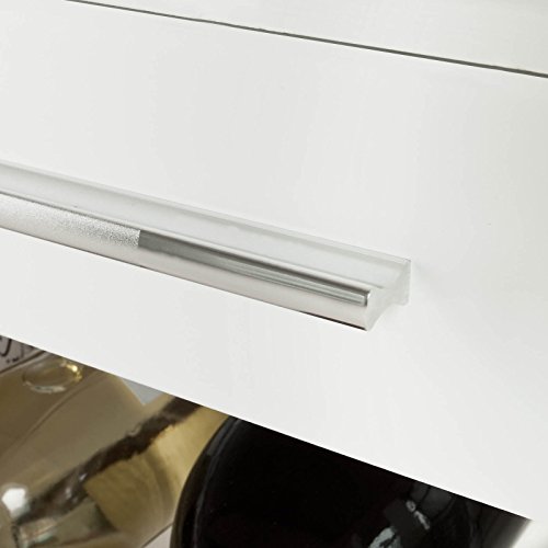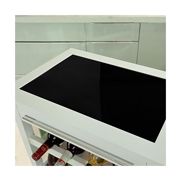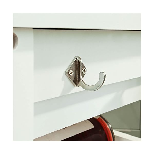 Ausgestattet ist dieser praktische Küchenwagen mit einer Glasplatte, einer geschlossenen Schublade, einem herausnehmbaren Tablett, einer Flaschenablage für vier Flaschen, zwei Handtuchhaken und einem offenen Regalboden, indem Sie viele Utensilien verstauen können.