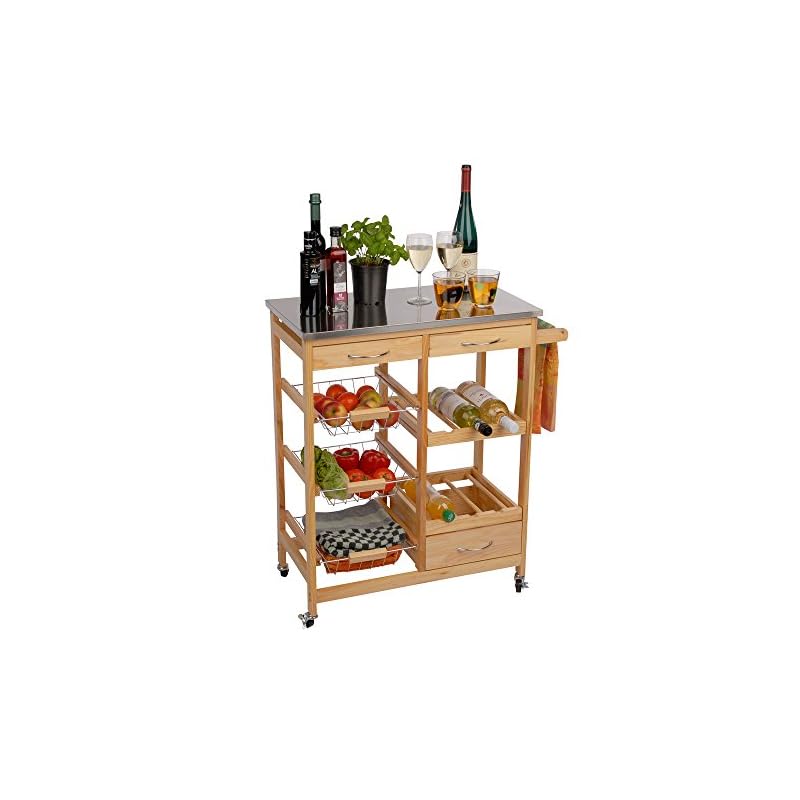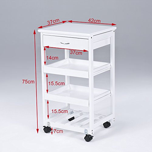 Praktischer Küchenwagen die Gesamtheit hochwertigem Holz mit reichhaltig Stauraum. für verschiedenste Utensilien in Ihrer Küche.