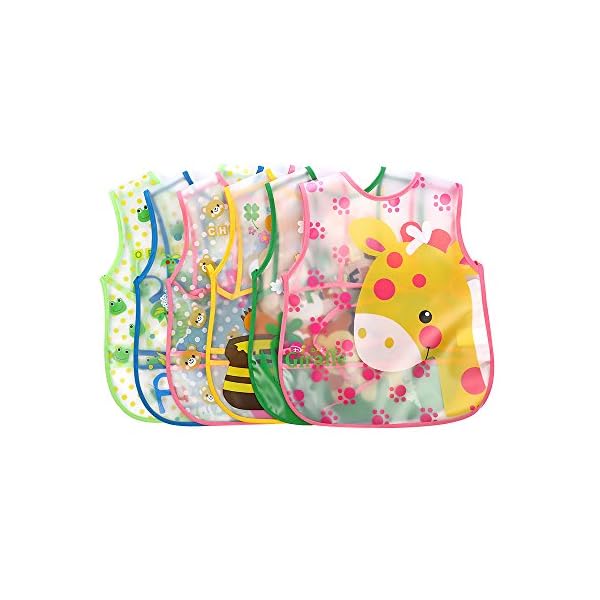 Haimoburg 5er Pack Wasserdicht Ärmellätzchen Nässeschutz Babylätzchen mit Auffangschale 1 bis 3 Jahre alt