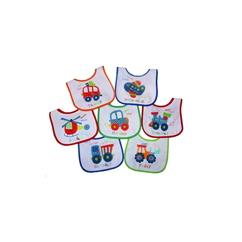 7 Stück Baby Lätzchen Jungen Mädchen Tagen der Woche Terry Wasserdicht Rückseite 10 Designs