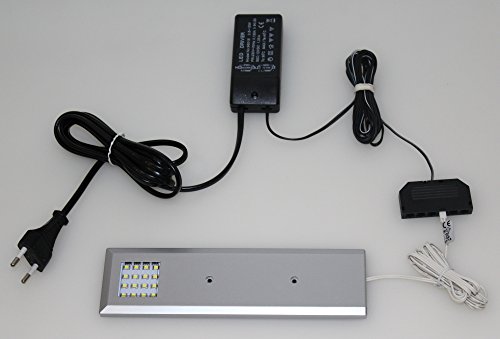LED Unterbauleuchten Alu warm weiß 5-er Set mit Möbeltrafo / Set 2475-5/4189-6W / Schrankleuchten Möbelbeleuchtung Aufbauleuchte Vitrinenleuchte Spiegelleuchte Schrankleuchte Vitrinenbeleuchtung Deko Lichter Set mit Netzteil