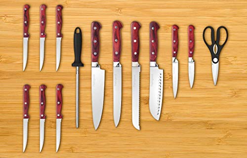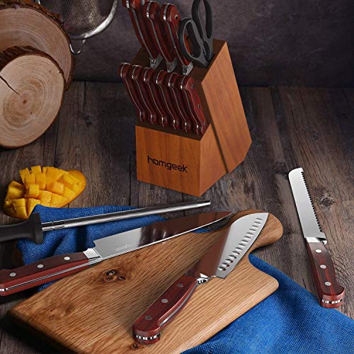 homgeek Messerblock Set, Profi Messer set 15-teiliges, Messerset Aus deutschem 1.4116 Edelstahlmit Ergonomischer Griff, Hochwertig und Extra Scharf Kochmesser Set mit Holzblock