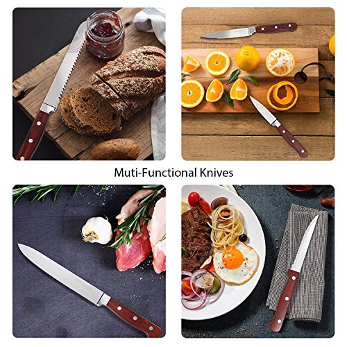 Überlegenes Material — Die Messerklinge ist eine Gründlichkeit geschmiedet, es ist allesamt X50Cr15 deutschen Kohlenstoffstahl Edelstahl zugunsten Exzellenz Festigkeit, Zähigkeit und rostbeständig gemacht, Das Material ist verschleißfest, dass die Lebensdauer Ihrer Messer bekommen kann.