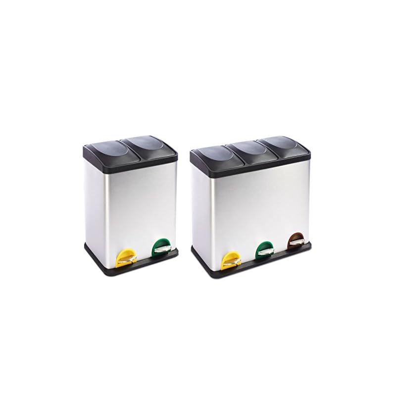 Mülleimer Trennsystem Brandon | Testurteil Gut | Treteimer aus Edelstahl | Abfalleimer für die Mülltrennung in der Küche, Mülltrennsystem | 2 Größen
