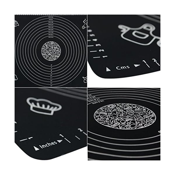 Fantastische große Ausrollmatte aus Silikon – Ideal für die akademische Arbeit mit Fondant, Gebäck, Glasur, Teig und vielem anderen. Sie besteht aus Silikon und bietet dadurch eine antihaft-Oberfläche. – Diese hochqualitative Matte ist vulgo sehr anpassbar und kann gefaltet oder aufgerollt und so leicht verstaut werden. Einfache Verwendung – bestreuen Sie die Matte allerdings leicht mit Mehl und schon können Sie mit dem Ausrollen beginnen! Sie besitzt praktische Meßringe, damit Sie perfekte Kreise ausrollen können sowie Größenmaße an jeder Seite in Centimeter und Gebühr.