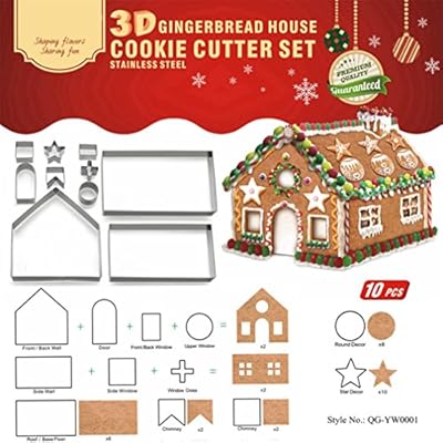Gracelaza 10 Stück 3D Weihnachten Ausstechformen Edelstahl Ausstecher Set für Keks, Plätzchen, Tortendekorationen - Ausstechform aus Edelstahl für Torten Kekse Backen Küche Zubehör