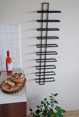 Weinregal “Dies” – wunderschöne Zimmerdekoration. Ganz Metall geschmiedet. Beize – Schwarz. Komplet unter Zuhilfenahme von Rostschutzfarbe grundiert weiterhin unter Zuhilfenahme von hochwertigen Lackfarben lackiert. Maße: H ca. 116cm, B ca. 28cm, T ca. 10cm. inkl. Befestigungsmaterial (4Stk. 4,0 x 55 mm schwarze Schrauben weiterhin adäquat 6mm Dübel). Alsbald lieferbar (Auslieferung nackt Ausschmückung).