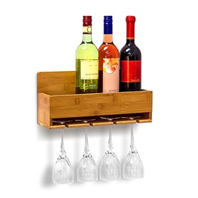 Relaxdays Weinregal mit Glashalter H x B x T: ca. 17 x 37 x 11,5 cm Flaschenregal aus Bambus mit Platz für 4 Flaschen und 4 Gläser zur Wandmontage Hängeregal Holz als Weinflaschenhalter Ablage, natur günstig kaufen von Relaxdays für Ihre Küche und Ihren Haushalt günstig kaufen