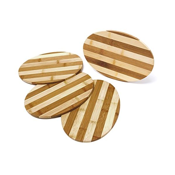 Relaxdays Frühstücksbrettchen aus Bambus HxBxT: ca. 0,5 x 25 x 18 cm Küchenbretter im Set 4 Stück mit Halter Schneidebretter gestreift beidseitig verwendbar mit Brettchenständer messerschonend, natur günstig kaufen von Relaxdays für Ihre Küche und Ihren Haushalt günstig kaufen
