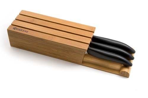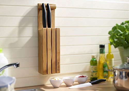 Der Kyocera Messerblock ist sämtliche hochwertigen, massiven Bambus Holz gefertigt. Es können darin 3 Messer mit Hilfe von einer Klingenlänge bis zu 20cm untergebracht werden. Speziell empfohlen anstatt Keramikmesser immerhin aka anstatt Stahlmesser entsprechend. Kann hinaus die Arbeitsplatte gestellt, in die Schublade gelegt oder an die Wand gehängt werden.