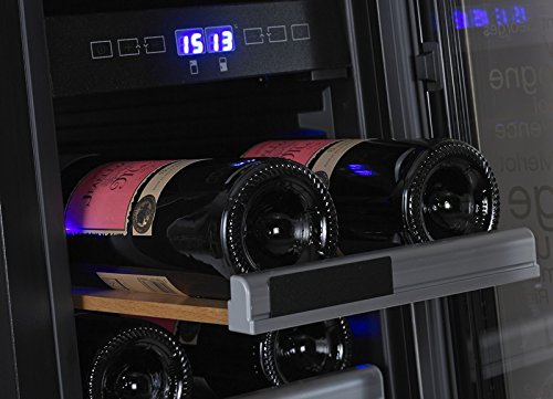 Wein-Temperierer anhand zwei Temperatur-Zonen, digitaler Temperatur-Anzeige (°C/°F) und Touchpad-Bedienung (einstellbar von 5 °C – 22 °C)