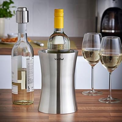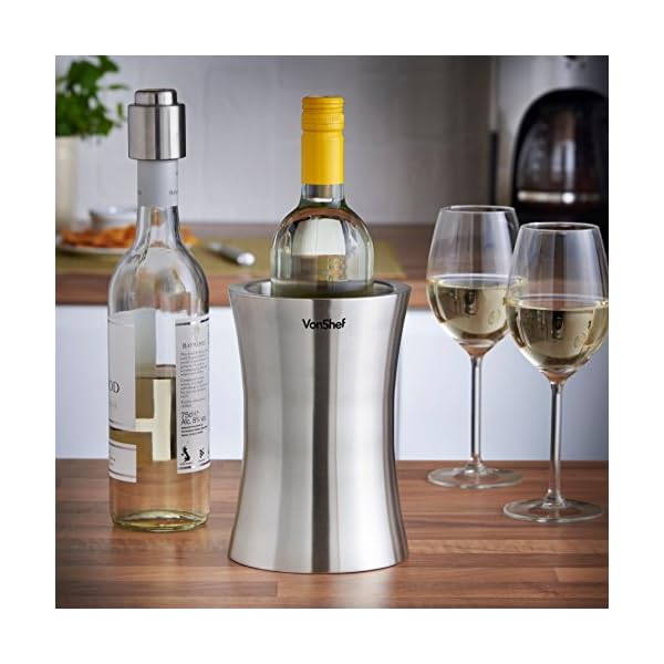 VonShef Weinkuehler Edelstahl doppelwandiger Weinkühler Kühler Halter – Flaschenkühler Vino