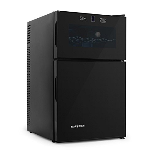 Der Klarstein MKS-7 ist eine mattschwarze Minibar mit integriertem Weinkühler, der