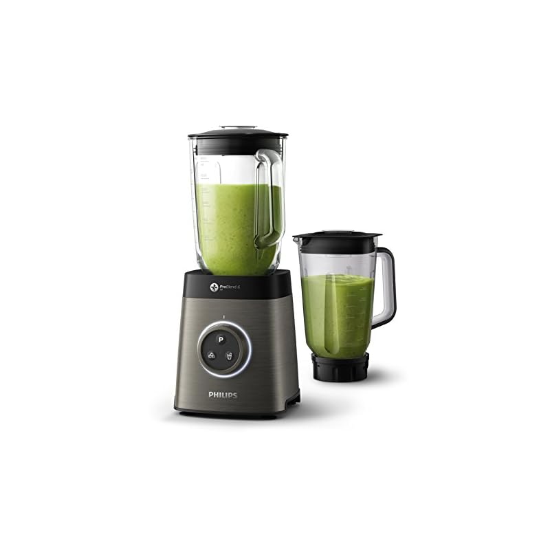 Philips HR3655/00 Standmixer (1400 Watt, ProBlend 6 3D Technologie, 2 Liter Glasbehälter, 2x Trinkbecher, Spülmaschinenfest) edelstahl